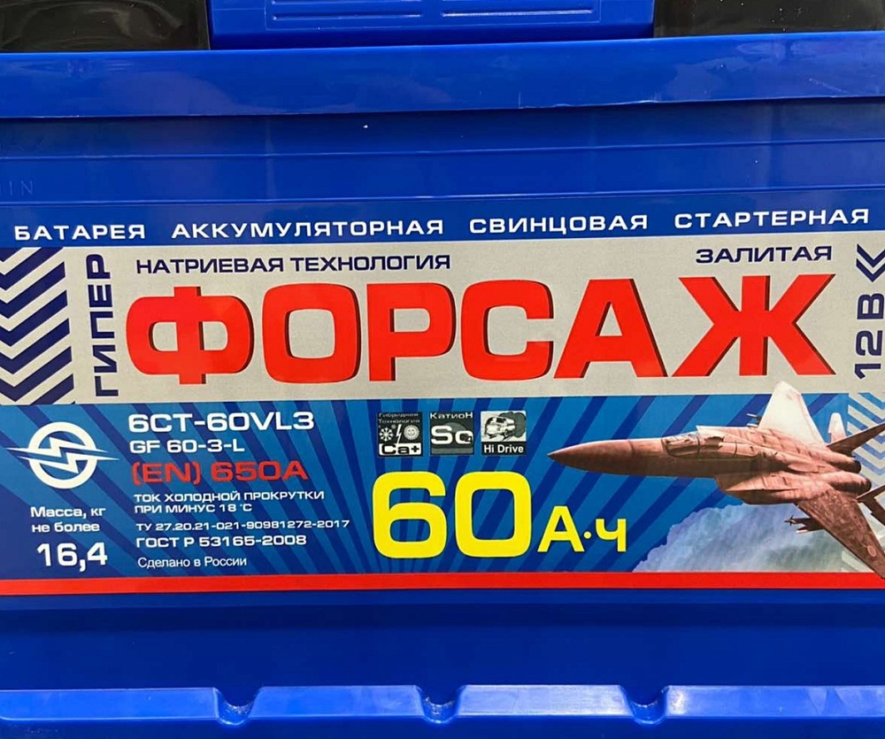 АКБ ГИПЕРФОРСАЖ 60 А/ч прямая полярность
