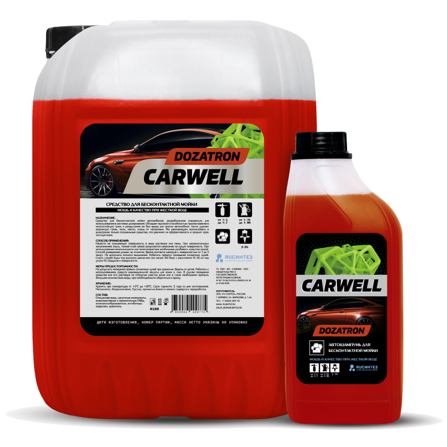 Особый состав пены Carwell Dozatron позволяет пользоваться ей в жесткой воде, при этом осуществляя качественное очищение от различных типов грязи.