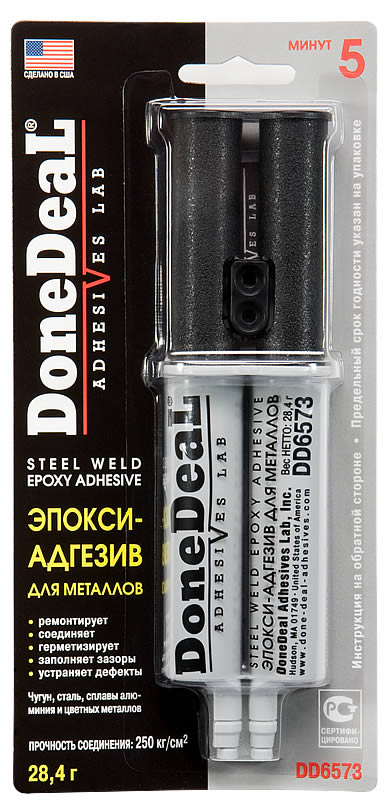 Двухкомпонентный эпокси-адгезив в упаковке "шприц" для ремонта и склеивания в любых сочетаниях черных и цветных металлов и их сплавов. Образует надежное и долговечное влагонепроницаемое соединение.Двухкомпонентный состав в упаковке "шприц" обеспечивает долгое и надежное соединение в любых сочетаниях черных и цветных металлов и их сплавов.