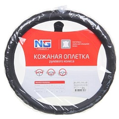 Оплетка на руль NEW GALAXY 38см черная нат.кожа 708-110