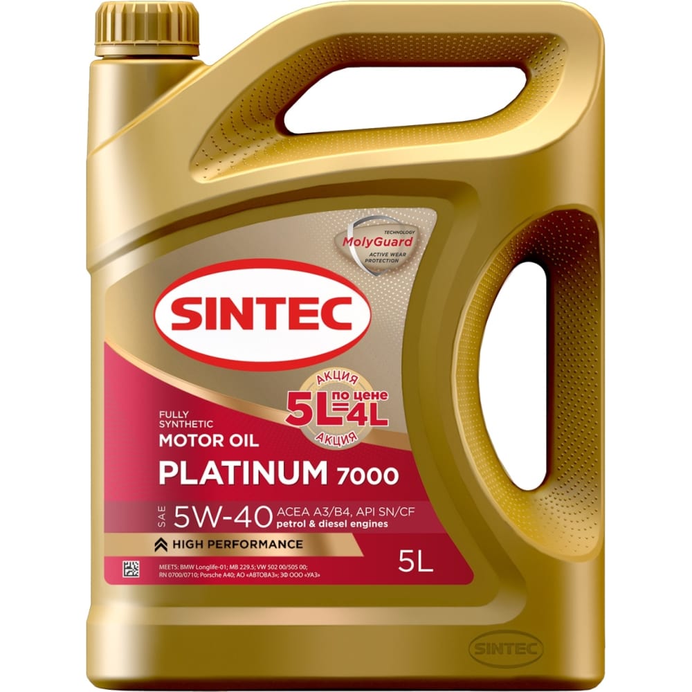 Масло Sintec Platinum 7000 5W40 Api SN/CF Acea А3/В4 синт.АКЦИЯ 4+1