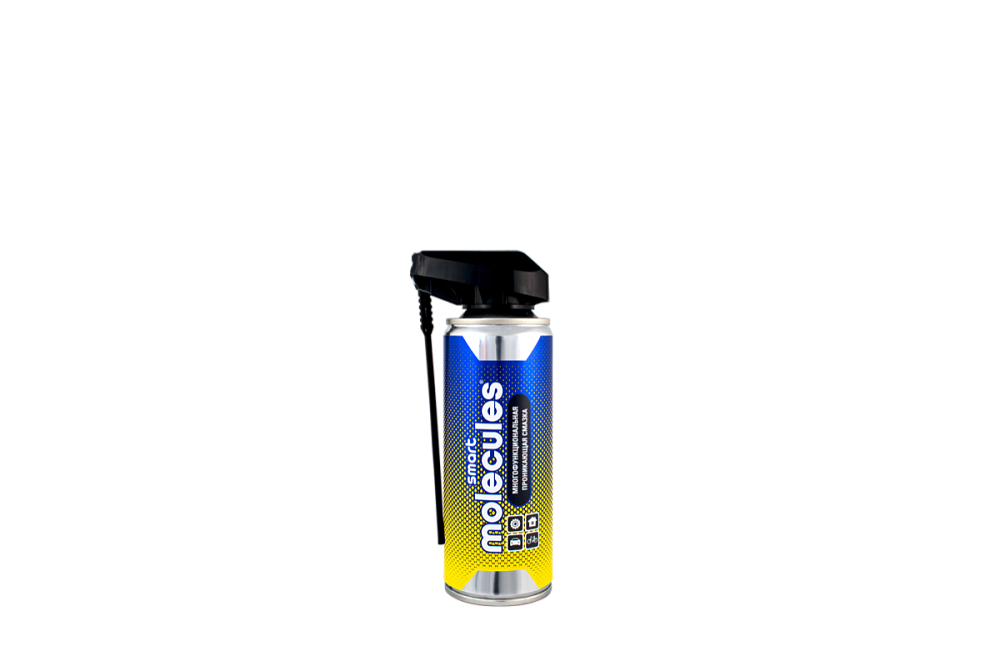 Molecules «Многофункциональная проникающая смазка» Универсальное средство с широким спектром действия: смазывает, очищает, защищает, вытесняет влагу,устраняет скрип. Предназначено для обработки петель дверей, любых резьбовых соединений и механизмов, крепежа, замков, электрического оборудования, трущихся металлических и пластиковых поверхностей и другого применения. Быстро проникает в структуру ржавчины, возвращая механизму подвижность.Эффективно очищает от загрязнений и коррозии и обеспечивает длительное смазывающее действие. Образует на поверхности защитную антикоррозийную пленку. Вытесняет влагу из труднодоступных мест. Очищает электроконтакты от грязи, препятствует их окислению, предотвращает утечки тока и короткое замыкание. Устраняет скрипы. Отлично подходит для консервации металлических поверхностей. Может также использоваться для удаления битумных пятен, остатков клейкой основы от стикеров, скотча и этикеток, а так же других трудновыводимых загрязнений.Состав нейтрален к лакокрасочному покрытиюНаличие товара в магазинах